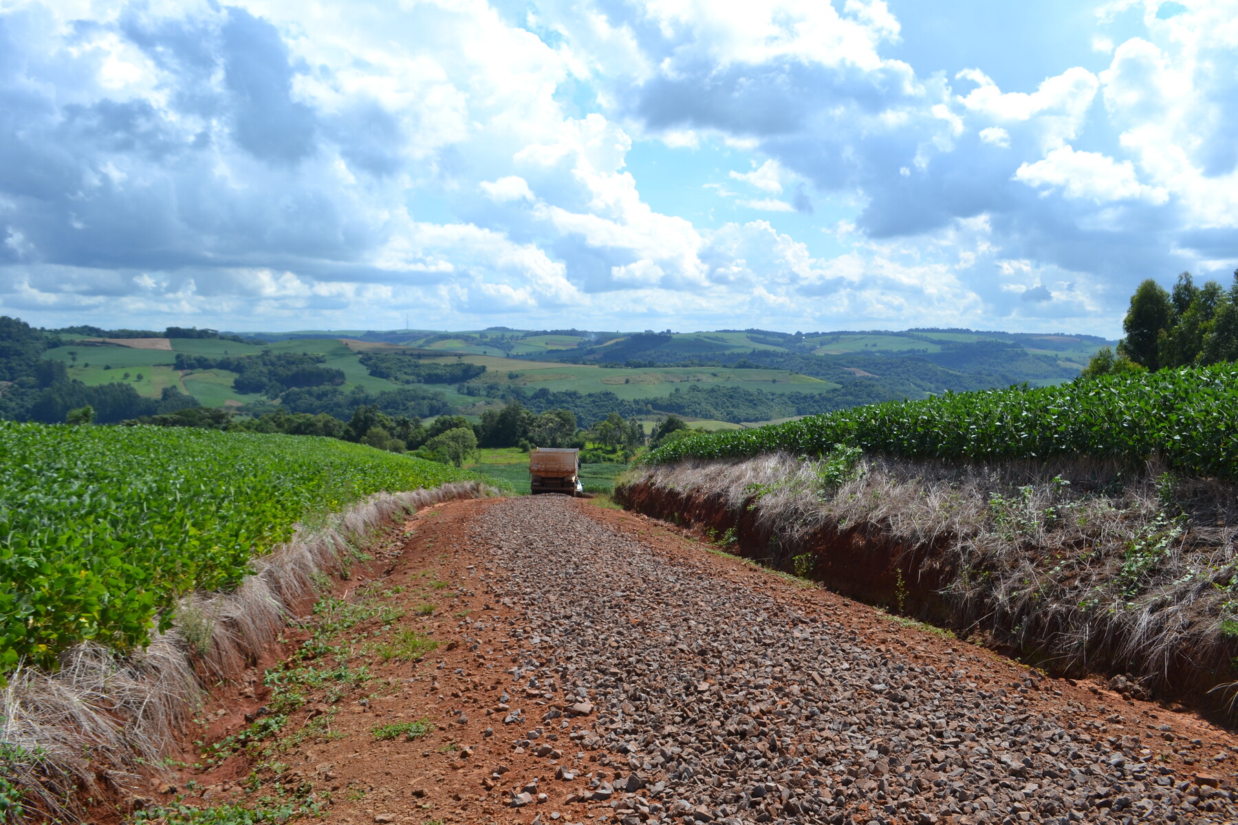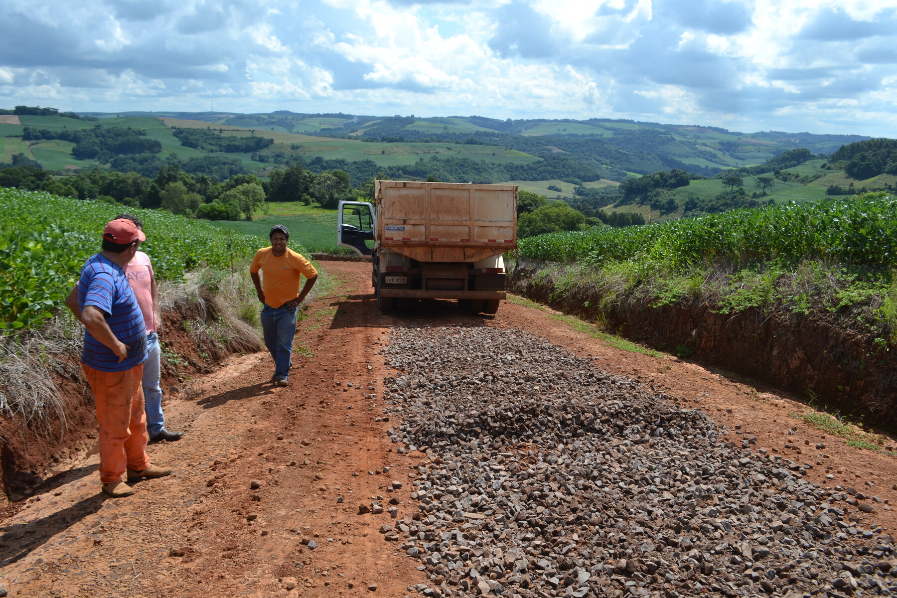 A Secretaria de Obras Públicas está com uma equipe de maquinário baseada na região do Polígono D, realizando uma completa pradronização das estradas, com colocação de pedra britada e compactação do leito principal, nos trechos mais propensos a transtornos aos usuários nos períodos de chuva. A empreitada, segundo o secretario Valdecir Toigo, atende diretamente o interesse dos agricultores já em plena colheita da safra de milho. De acordo com o cronograma de atividades, são mais de 25 estradas, entre principais e secundárias, listadas no projeto em execução. A Secretaria de Obras segue a orientação do prefeito Adilson De Valle de manter as estradas do município dentro das condições exigidas pelos usuários, não apenas nos perídos de maior intensidade de uso como nas safras, mas também para atender as rotinas diárias dos moradores de Quatro Irmãos em relação ao contato entre a cidade e o meio rual, no trasnporte escolar, por exemplo, e com Erechim e Passo Fundo, centros regionais de intesse da população principalmente no atendimento a saúde.